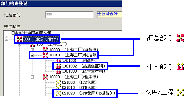 部门的类型(计入部门、仓库/工序部门、汇总部门)