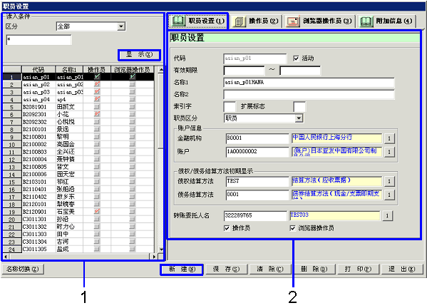 (以下项目仅在[职员设置]选项卡中「操作员」复选框为ON时显示)