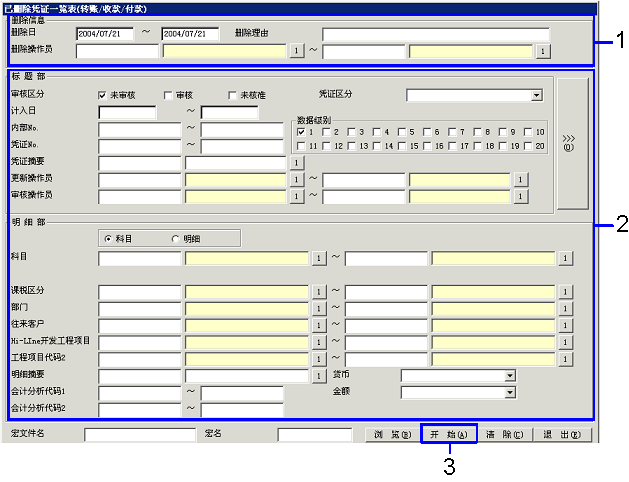 设置更详细的查询条件时,输入要发行凭证的抽出条件。