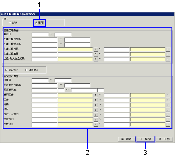 →显示[在建工程转出输入(转账删除对象一览)]画面。(请参照「4.1.1在建工程数据的删除」)