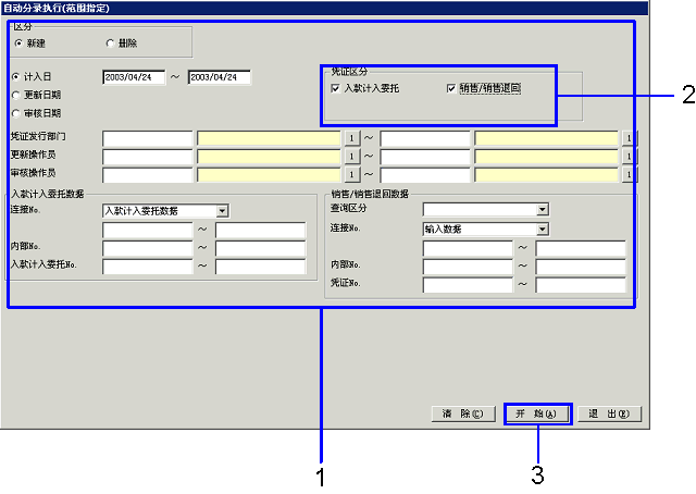 →显示[执行自动分录(范围指定)]画面。