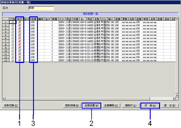 - 把要进行自动分录数据的[执行对象]复选框设置为ON。