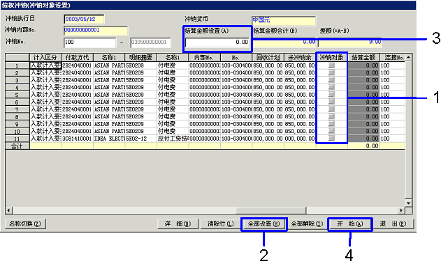 未审核的数据、自动分录对象中未执行自动分录的数据不能成为对象。此外,可以冲销债权的一部分。(部分冲销机能)