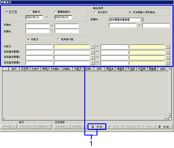 输入要发行数据的抽出条件,点击“显示(X)”按键。