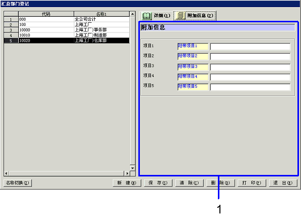 [汇总部门登记]画面-[详细]、[附加信息]选项卡