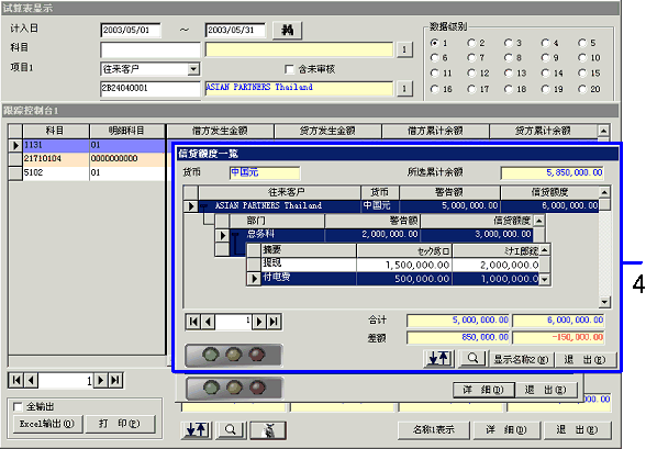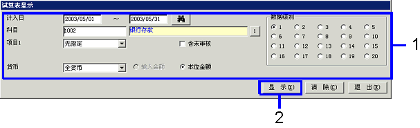 指定科目、项目并查询数据,可以逐层显示更新后的余额试算。