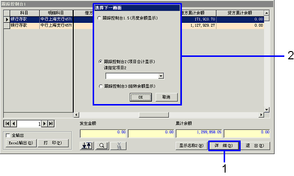 - 选择逐层显示查询将在“月度余额显示”、“跟踪控制台2”、“跟踪控制台3”中的任何一项中进行后点击“OK”按键。