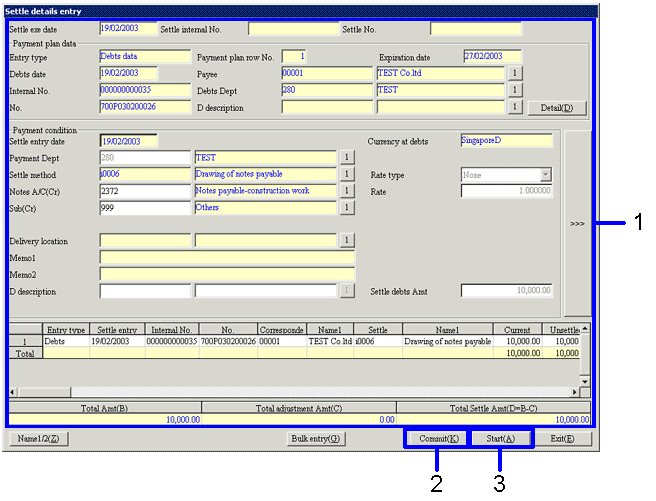 - Enter items in the [Settle Details Entry] screen.