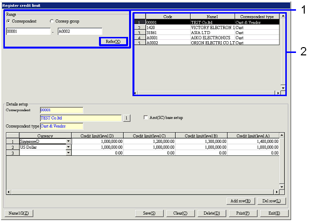 limit (Level C) ≤ Credit limit (Level B) ≤ Credit limit (Level A). It is also possible to enter amounts