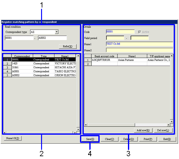 → Details information will be registered. You can enter detail information for another correspondent.
