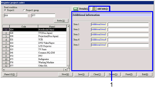 project code 2] screen – [Details] tab, [Additional