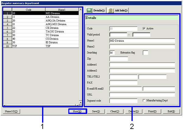 enter a code for the business segment to which the department belongs. Up to 20 English one byte characters