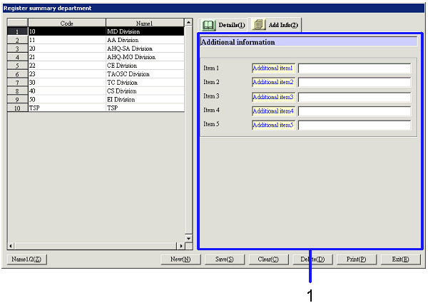 Enter a code for the summary department. Up to 20 half-sized alphanumeric