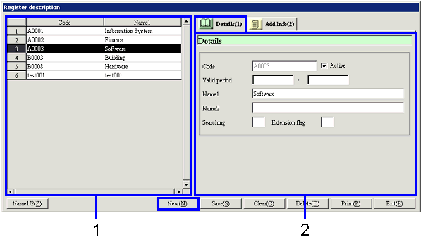 It is useful to register descriptions used frequently as master data. Descriptions manually entered do not handle