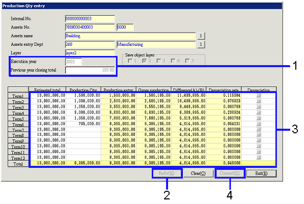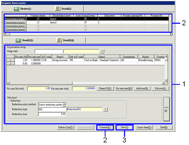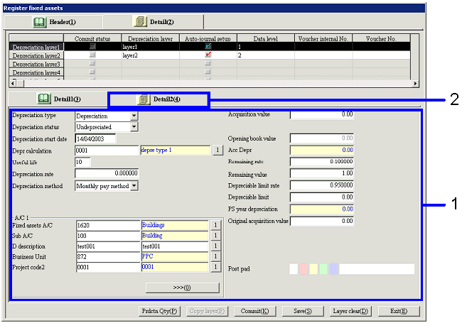 tab, set up a depreciation layer and enter depreciation data on the [Detail]