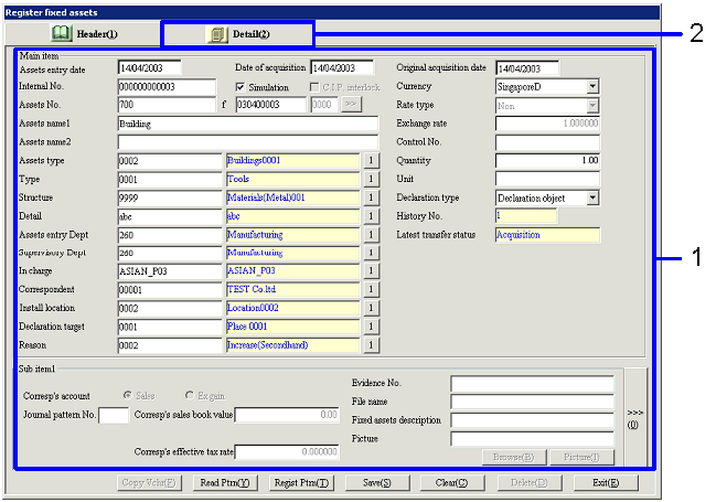 can register, modify or delete Fixed assets. After entering contents of the fixed assets on the [Header]