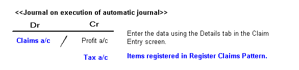 In "Register Claims Pattern," make a new registration and modifications of the "Claims A/C of collection plan" and "Tax A/C of the details" combinations.