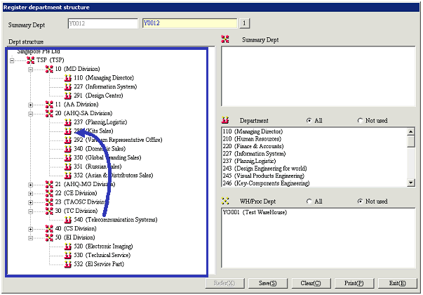 screen, enter the summary departments to be the top of the department structure