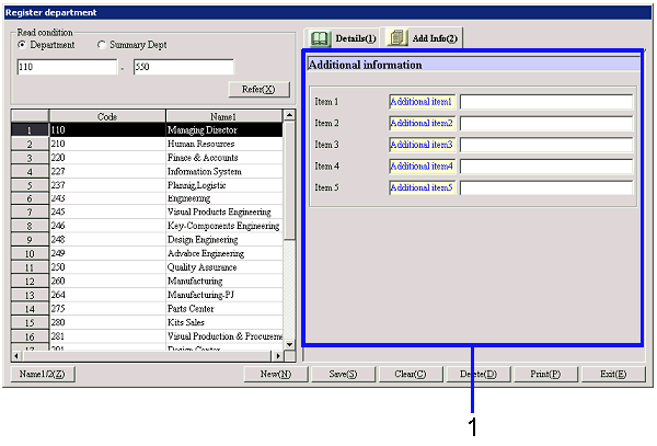 [Register department] screen – [Details]