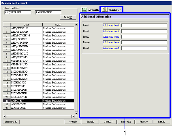Select conditions to read the bank accounts to register or refer to.
