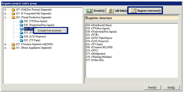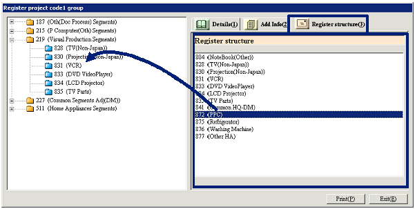 register structure for the project code group specified and drag and drop to