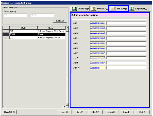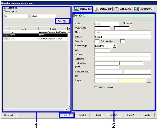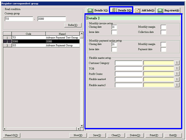 on the correspondent group selected is displayed on the [Details 1] tab.