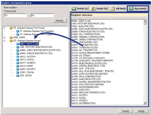 The correspondent with the "Group control" box checked on the [Details 3] tab