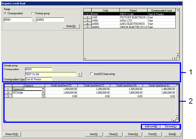 limit (Level C) ≤ Credit limit (Level B) ≤ Credit limit (Level A). It is also possible to enter amounts