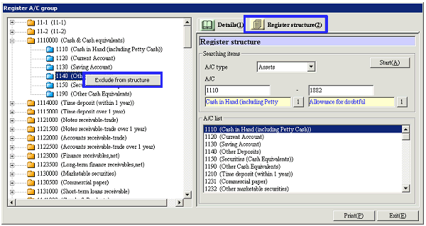 [Register A/C Group Structure]