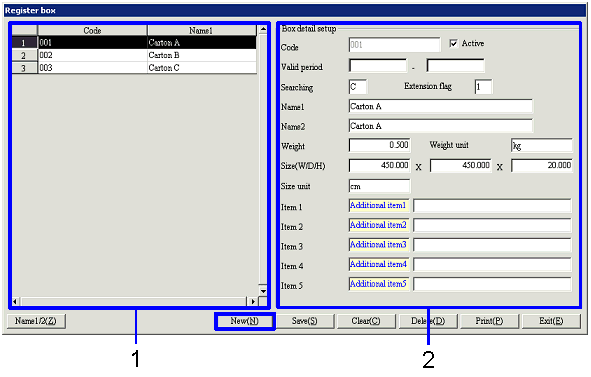 Register the boxes to be used for packing