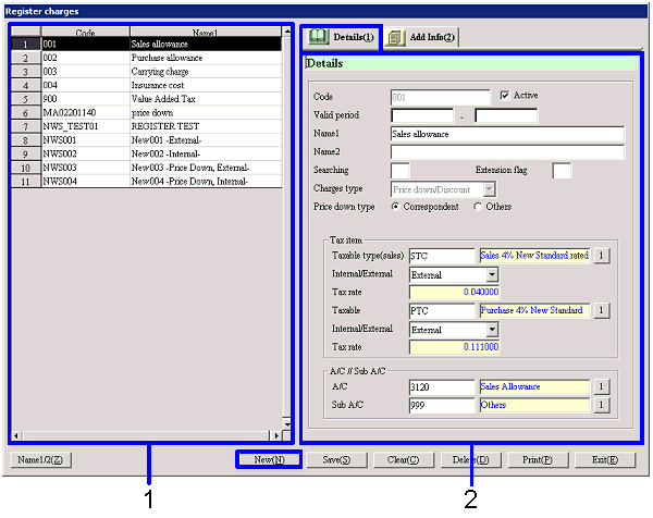 Click the "New" button when registering new charges.