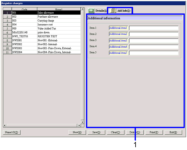 [Register charges] screen - [Details], [Additional information] tab