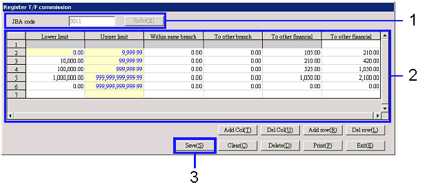 → [Register T/F commission] screen will appear.
