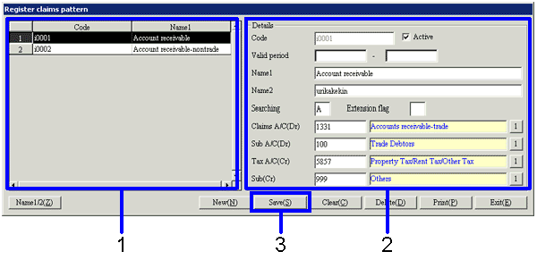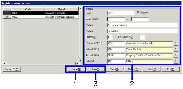 In "Register Claims Pattern," make a new registration and modifications of the "Claims A/C of collection plan" and "Tax A/C of the details" combinations.